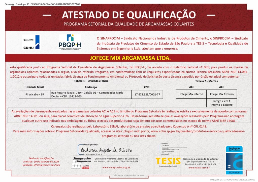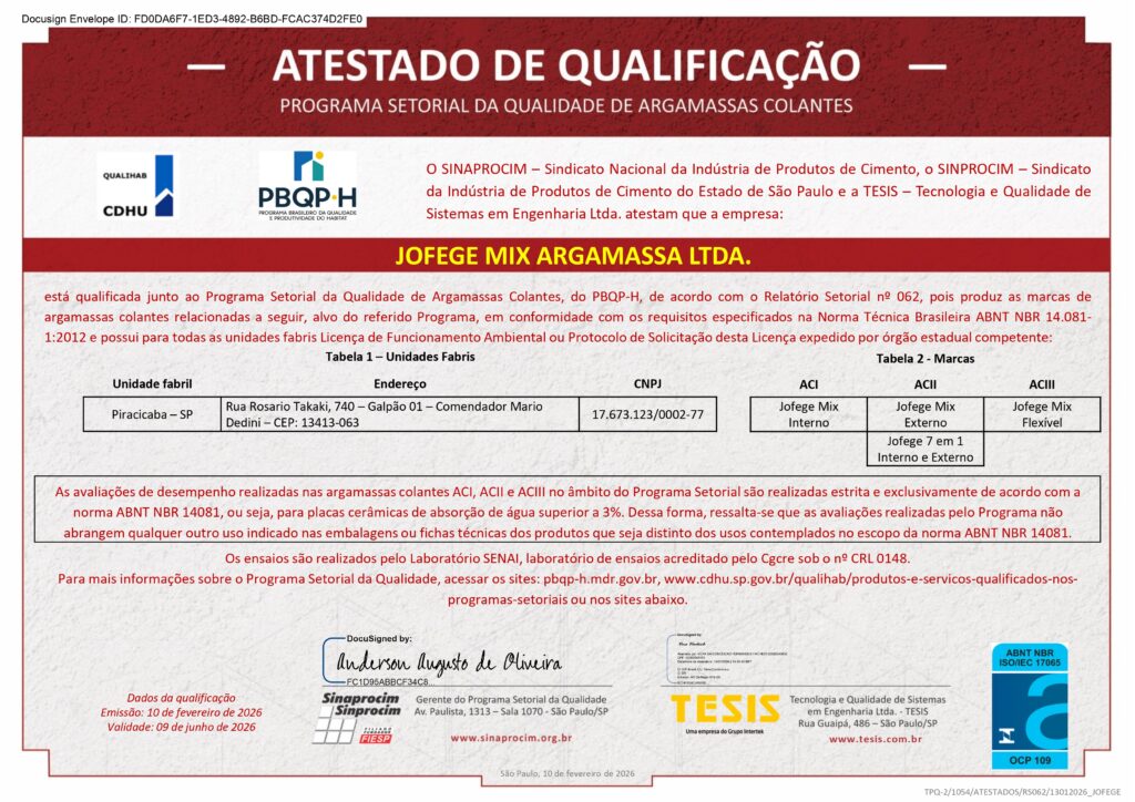 A JOFEGE Mix é referência no mercado de argamassas e rejuntes há quase 30 anos por todo estado de São Paulo.
