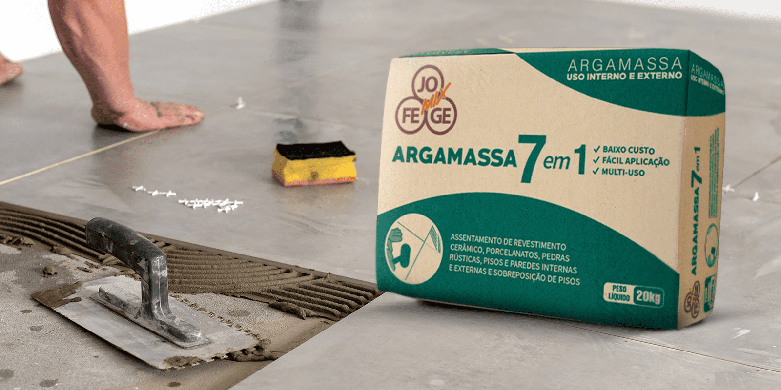 Há também produtos como a Argamassa 7 em 1 JOFEGE Mix, que oferece um grande leque de usabilidade, combinando propriedades divergentes e entregando resultados igualmente satisfatórios.